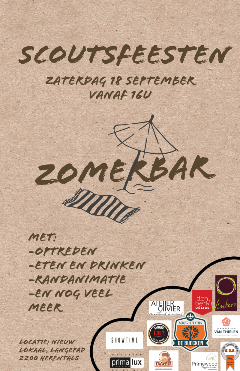 De scoutsfeesten staan dit jaar gepland op zaterdag 18 september. Deze beginnen vanaf 16u na de vergadering van de kapoenen en wolven. Graag nodigen wij jullie uit om een terraske te komen doen en te genieten van optredens tot in de vroege uurtjes. Er zal randanimatie en vertier zijn voor de kleinste, en genoeg drank voor de oudste.